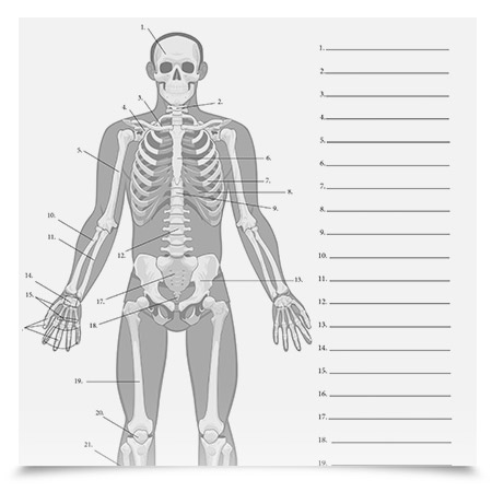 A test of 25 major bones and bone groups of the Anterior Skeleton.