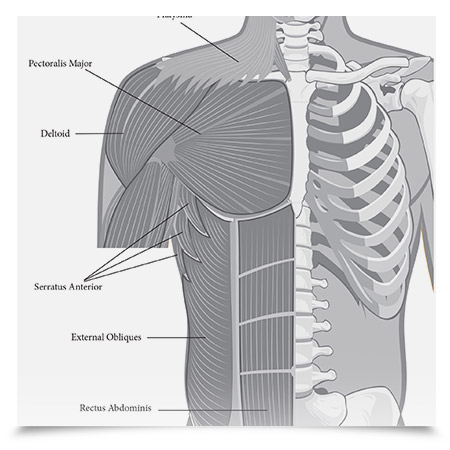 Close up view of the muscle groups of the Anterior Superficial Torso.