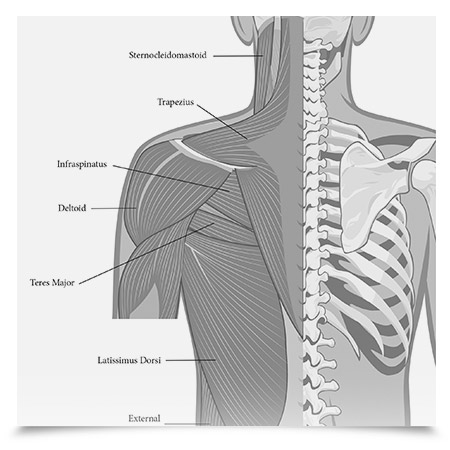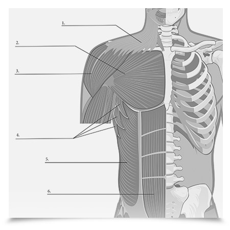 Close up view of the muscle groups of the Posterior Superficial Torso.