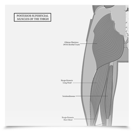 Close up view of the muscle groups of the Posterior Superficial Thigh.